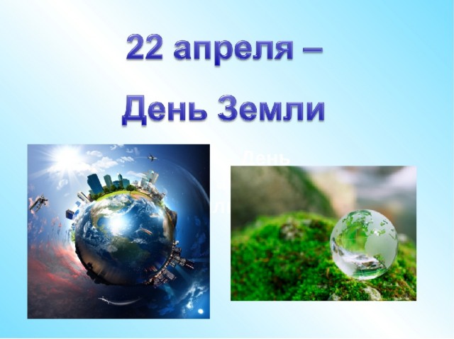 Ежегодно 22 апреля празднуется День Земли, когда люди со всего мира объединяются, чтобы задуматься о нашей удивительной планете и научиться защищать окружающую среду. Время для этого праздника выбрано как нельзя лучше. Природа пробуждается от зимнего сна, повсюду веет свежестью молодых листьев. Такая обстановка заставляет людей почувствовать красоту природы и задуматься над тем, что можно сделать для спасения чудесного мира от экологической катастрофы.